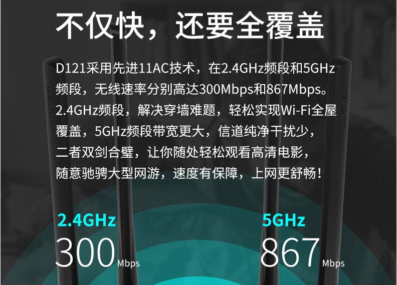 水星無線路由器家用高速wifi 5G雙頻千兆速率路由器穿墻王大功率增強 百兆端口宿舍學(xué)生寢室D121