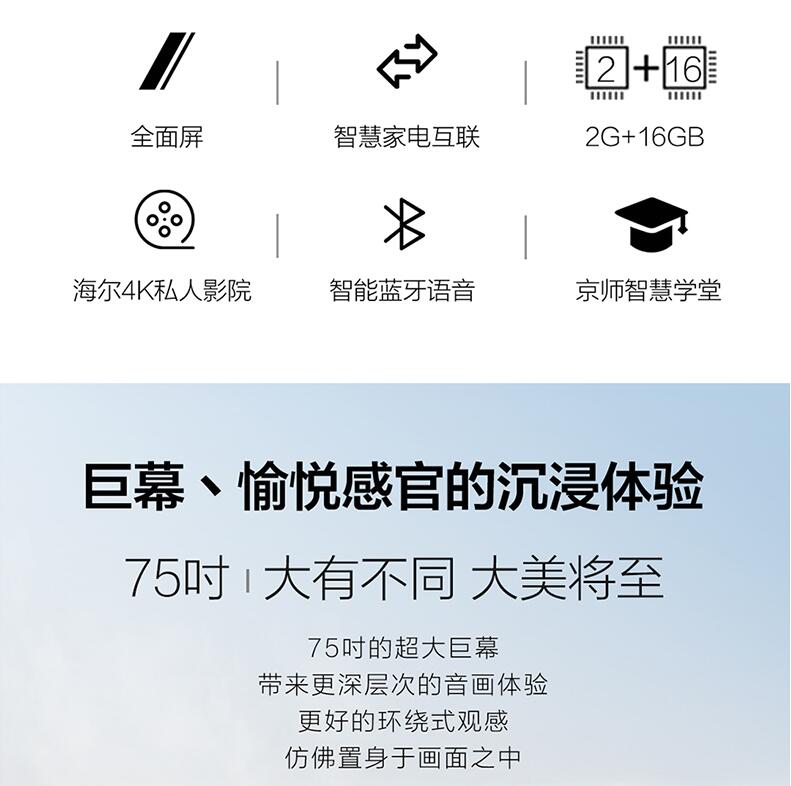 Haier/海爾 LU75C51(PRO) 75英寸4K智能語音超高清平板液晶電視