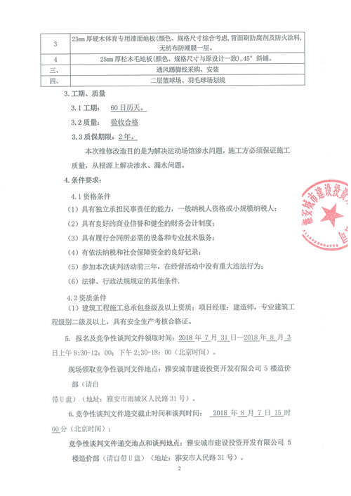 雅安市文化中心一期全民健身活動(dòng)中心木地板整改工程——競(jìng)爭(zhēng)性談判公告