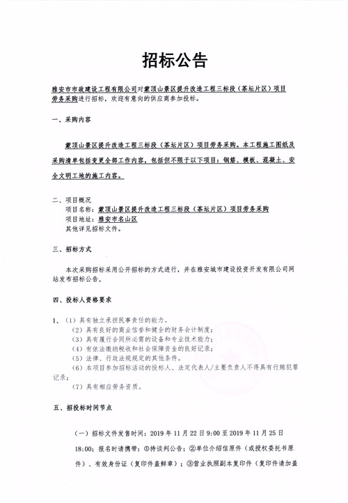 蒙頂山景區(qū)提升改造工程三標(biāo)段(茶壇片區(qū))勞務(wù)采購項(xiàng)目招標(biāo)公告