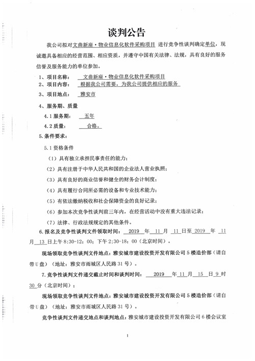 城投·文曲新座物業(yè)信息化軟件采購項(xiàng)目競爭性談判公告