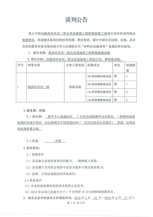 隴西河?xùn)|風(fēng)二橋及其連接線工程橋梁荷載工程競爭性談判公告