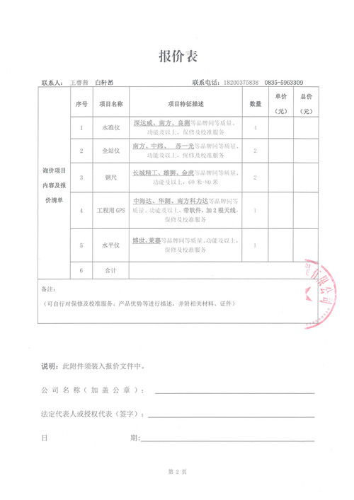 詢價函 施工測量設(shè)備采購(城投建工)