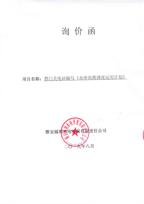 詢價(jià)函(《水庫(kù)汛期調(diào)度運(yùn)用計(jì)劃》)