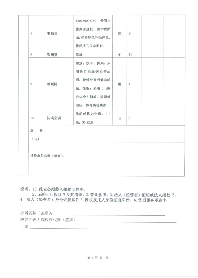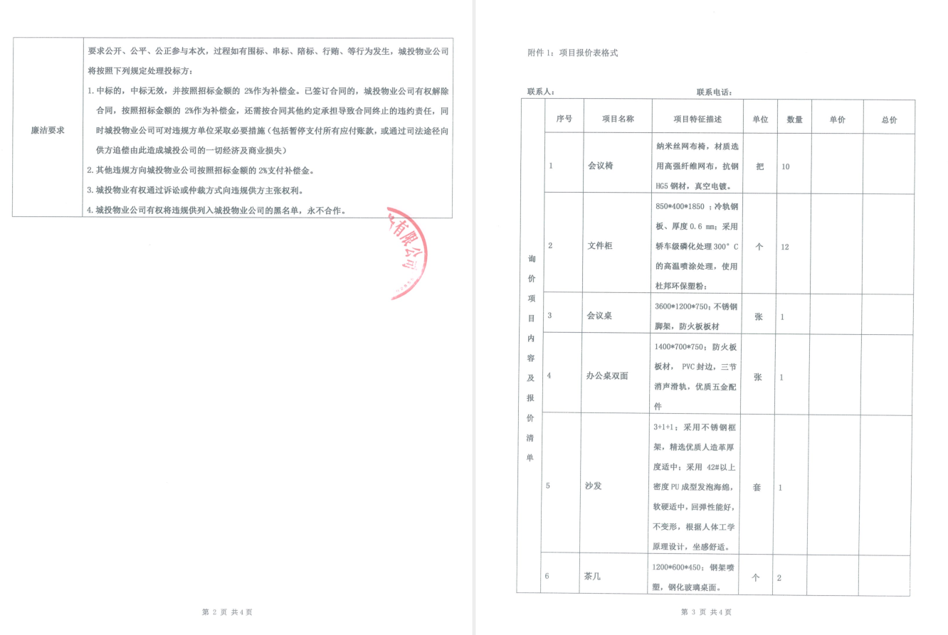 城投·文曲新座物業(yè)管理用房辦公家具采購(gòu)詢價(jià)函