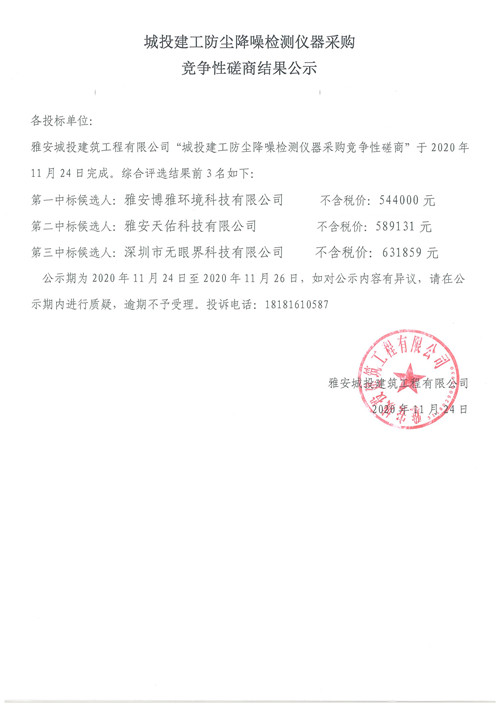 城投建工防塵降噪檢測儀器采購競爭性磋商結(jié)果公示