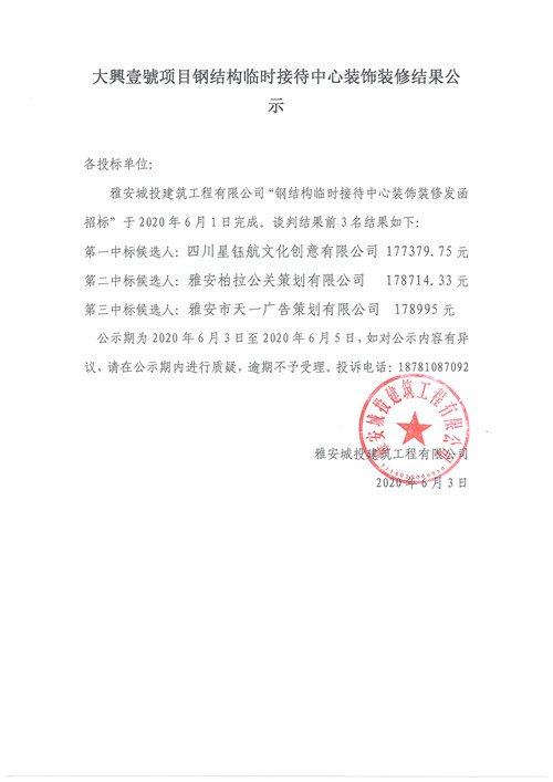 城投建工公司大興壹號(hào)項(xiàng)目鋼結(jié)構(gòu)臨時(shí)接待中心裝飾裝修詢價(jià)函結(jié)果公示