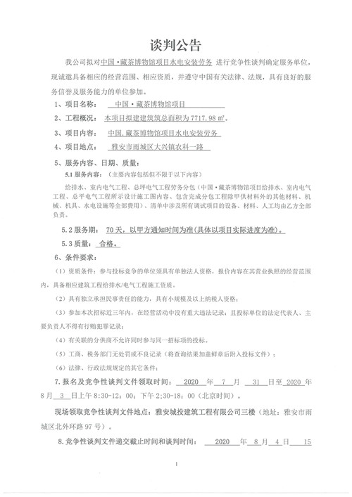 城投建工公司中國(guó)·藏茶博物館項(xiàng)目水電安裝勞務(wù)競(jìng)爭(zhēng)性談判公告