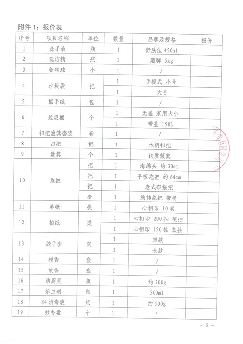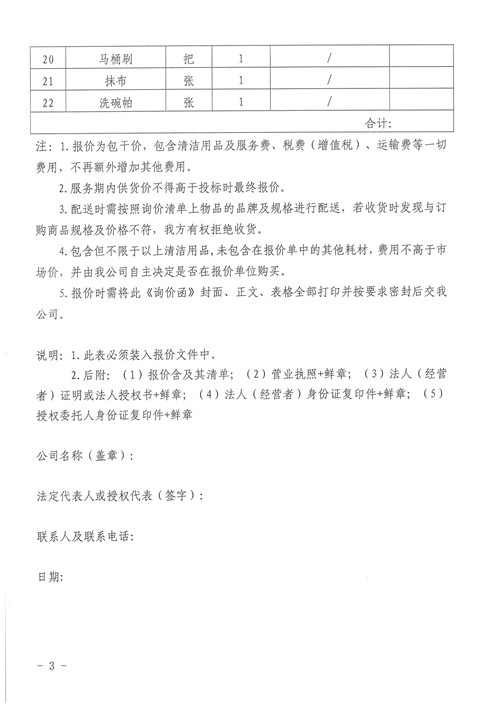 附件:清潔用品詢價函