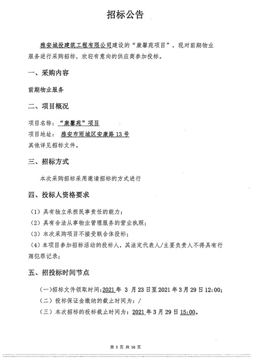 城投建工公司康馨苑項目前期物業(yè)服務(wù)招標公告