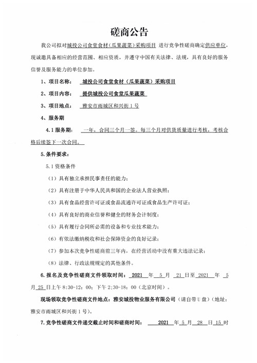 城投物業(yè)關(guān)于城投公司食堂食材(瓜果蔬菜)采購項目競爭性磋商公告