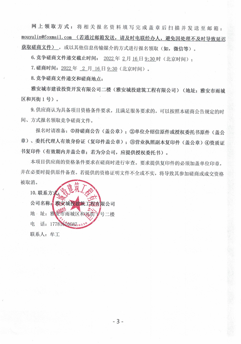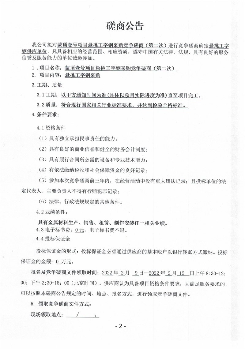 蒙頂壹號項(xiàng)目懸挑工字鋼采購競爭磋商公告(第二次)