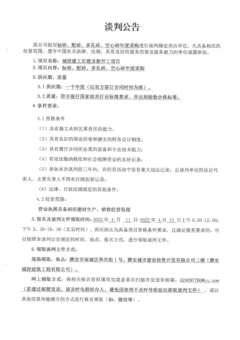 城投建工標(biāo)磚、配磚、多孔磚、空心磚年度采購(gòu)競(jìng)爭(zhēng)性談判公告