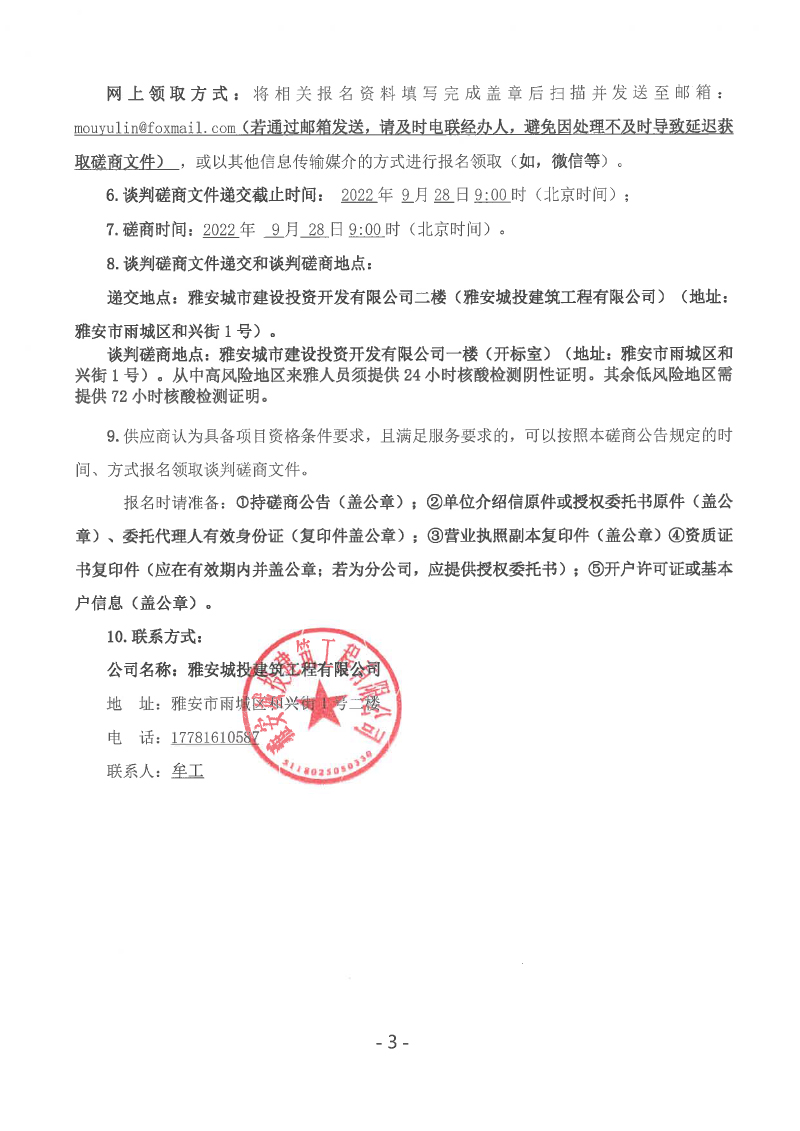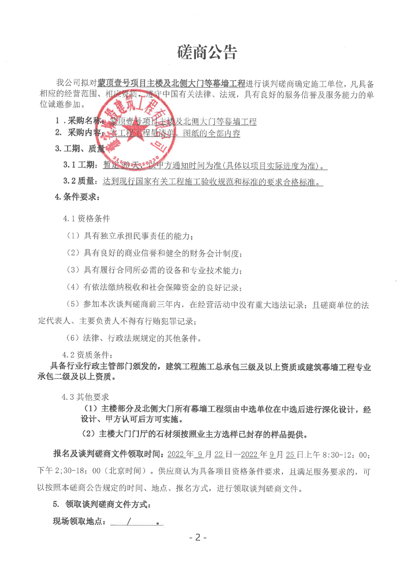 蒙頂壹號項(xiàng)目主樓及北側(cè)大門等幕墻工程談判磋商公告