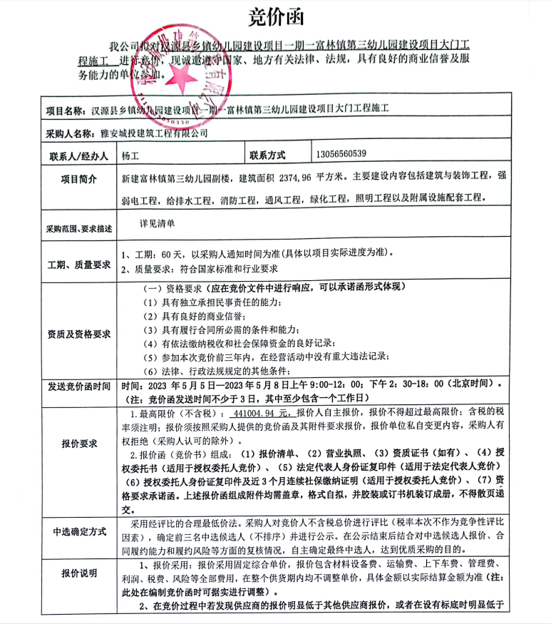漢源縣鄉(xiāng)鎮(zhèn)幼兒園建設(shè)項(xiàng)目一期一富林鎮(zhèn)第三幼兒園建設(shè)項(xiàng)目大門(mén)工程施工競(jìng)價(jià)公告