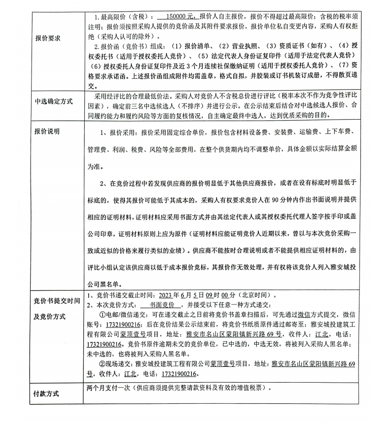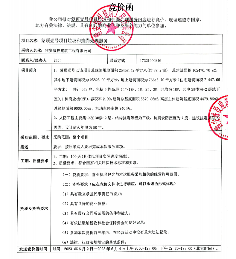 蒙頂壹號項(xiàng)目垃圾和抽糞處理服務(wù)競價公告