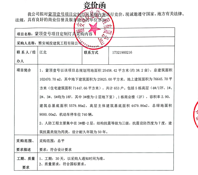 蒙頂壹號(hào)項(xiàng)目定制燈具采購(gòu)競(jìng)價(jià)公告