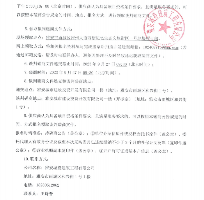 雅安市西康記憶生態(tài)文旅街區(qū)項(xiàng)目一號(hào)地塊項(xiàng)目景觀(guān)小品雕塑采購(gòu)談判磋商公告