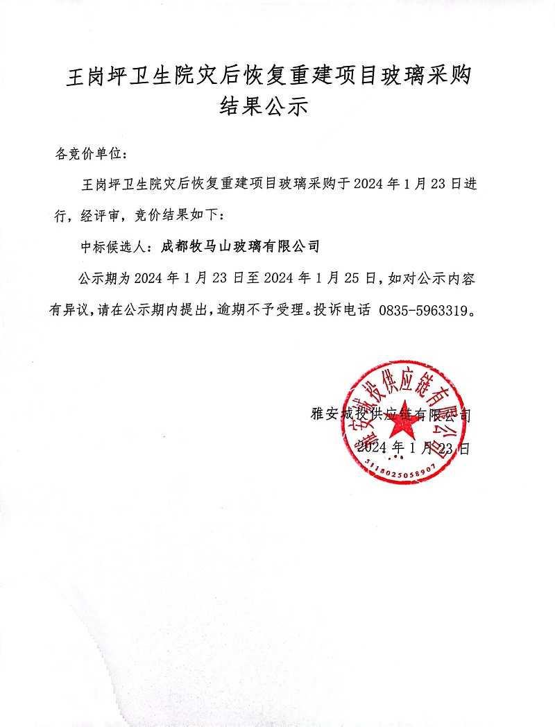 王崗坪衛(wèi)生院災(zāi)后恢復(fù)重建項(xiàng)目玻璃采購(gòu)結(jié)果公示