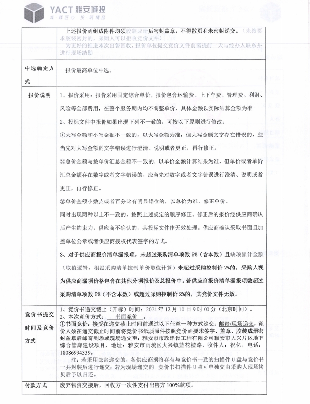 雅安市大興片區(qū)地下綜合管廊建設項目(二臺地庫房)廢圍擋出售競價公告