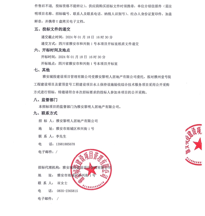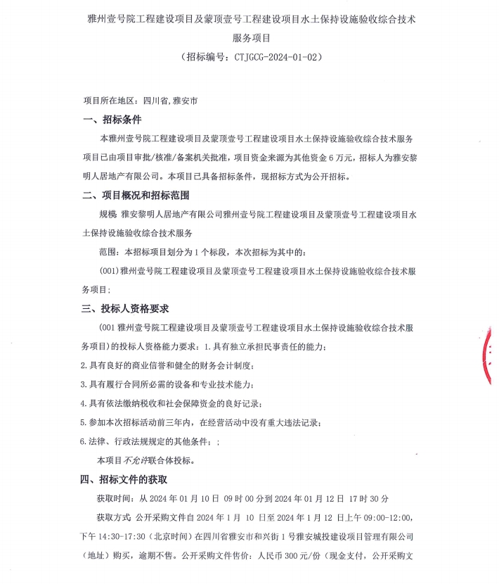 雅州壹號院工程建設(shè)項目及蒙頂壹號工程建設(shè)項目水土保持設(shè)施驗收綜合技術(shù)服務(wù)項目公告