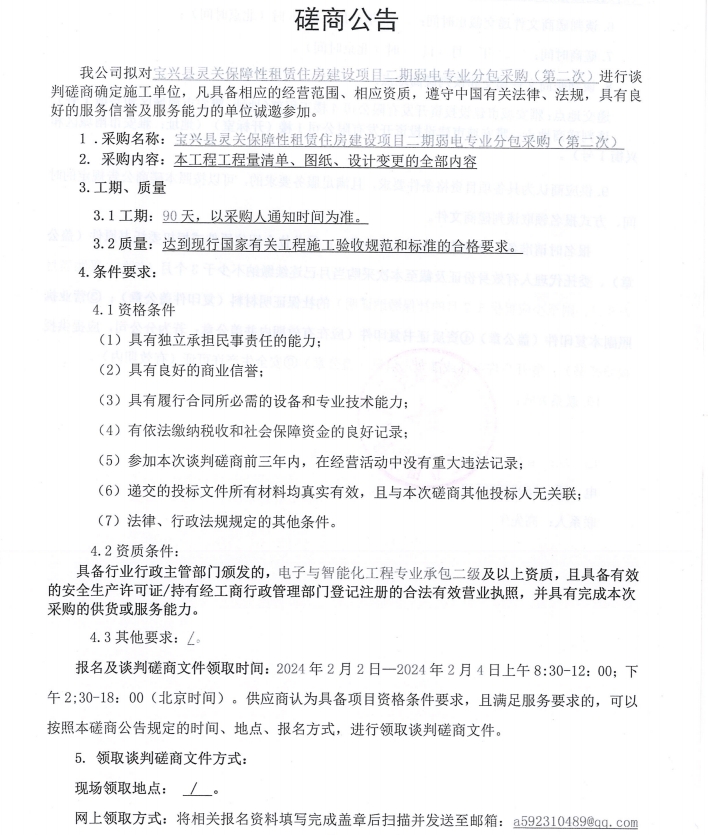 寶興縣靈關(guān)保障性租賃住房建設(shè)項(xiàng)目二期弱電專業(yè)分包采購(第二次)談判磋商公告