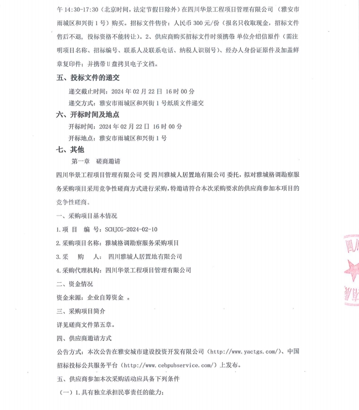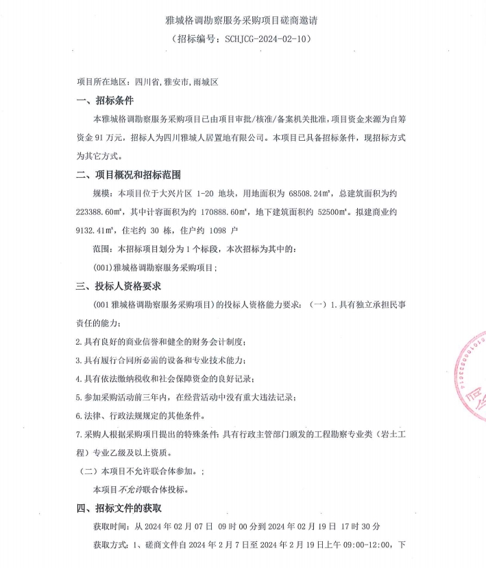 雅城格調(diào)勘察服務(wù)采購項(xiàng)目磋商邀請公告