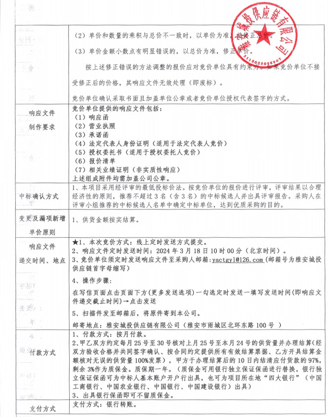 響應文件格式(競價)