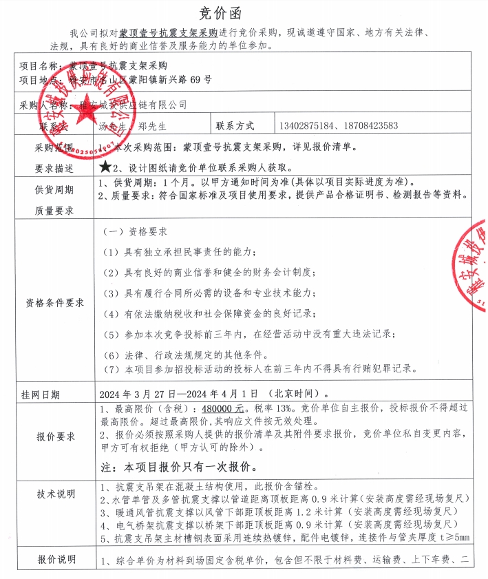 響應(yīng)文件格式-蒙頂壹號抗震支架采購