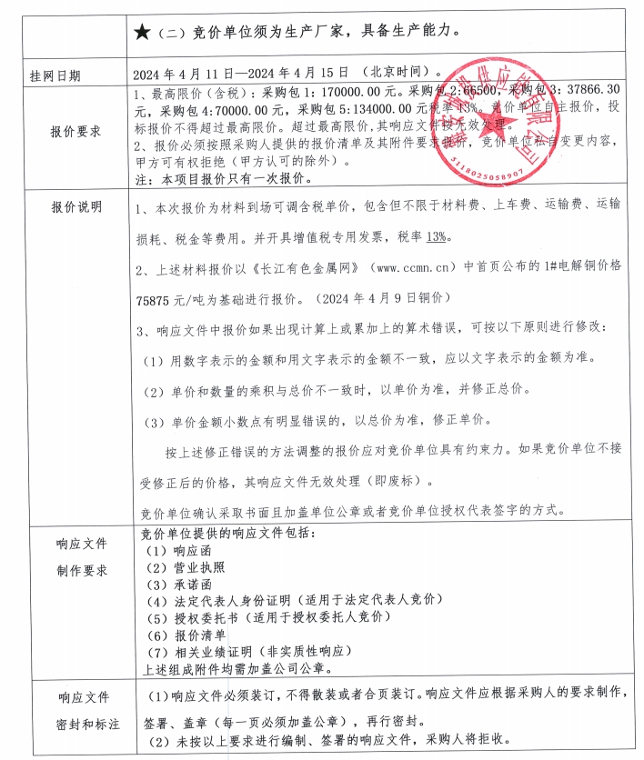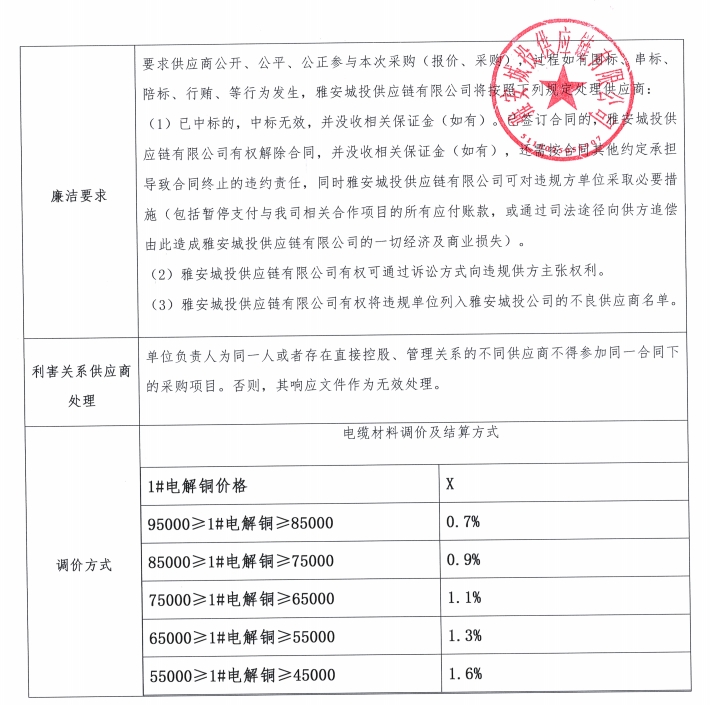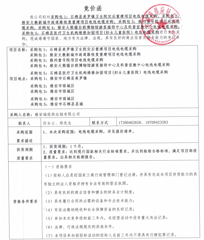 雅安城投供應(yīng)鏈有限公司電線電纜采購競價公告