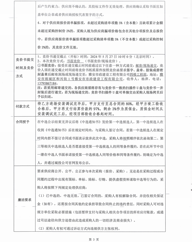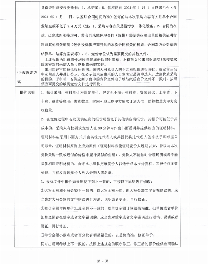 美羅鎮(zhèn)一體化設(shè)備競價函