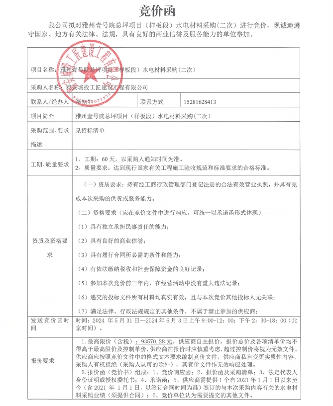 附件:競價(jià)函-雅州壹號(hào)院總坪項(xiàng)目(樣板段)水電材料采購