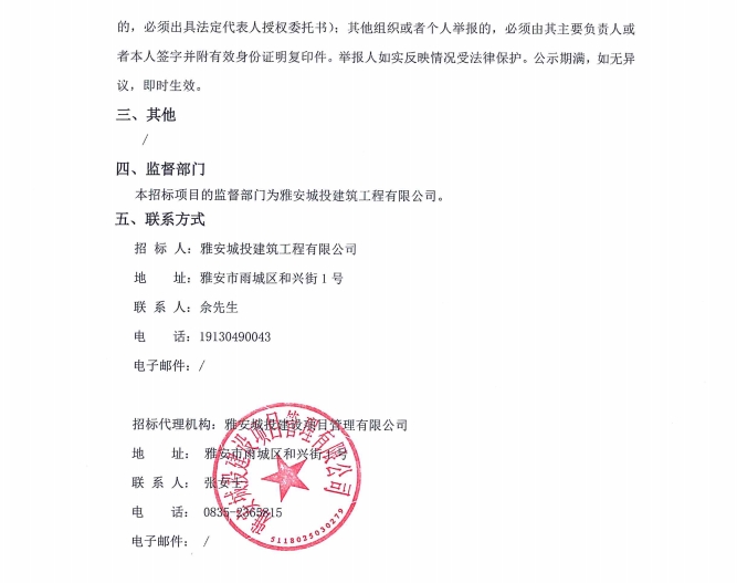 雅州壹號院項目新型懸挑工字鋼采購項目(第四次)中標(biāo)候選人公示