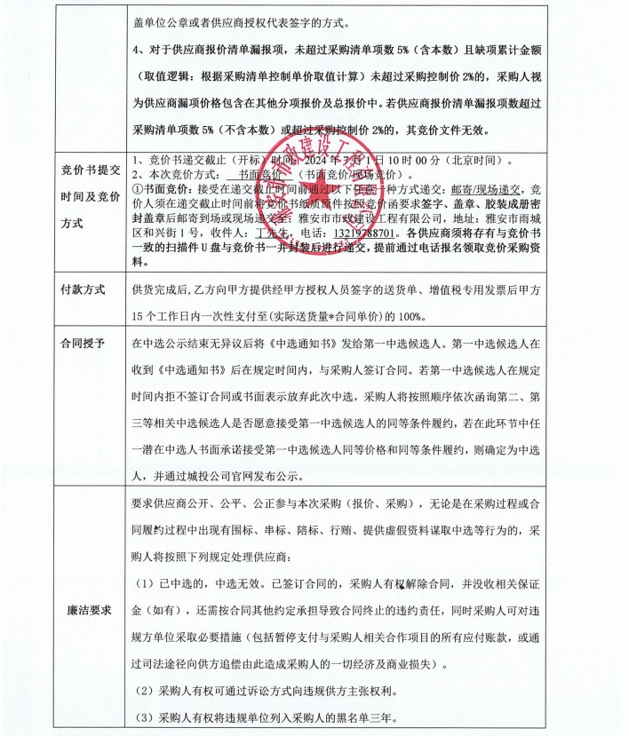 雅安文教新城體育產(chǎn)業(yè)制造園基礎(chǔ)設(shè)施及配套工程建設(shè)項(xiàng)目一標(biāo)段入園道路工程項(xiàng)目井蓋等材料采購競價(jià)公告