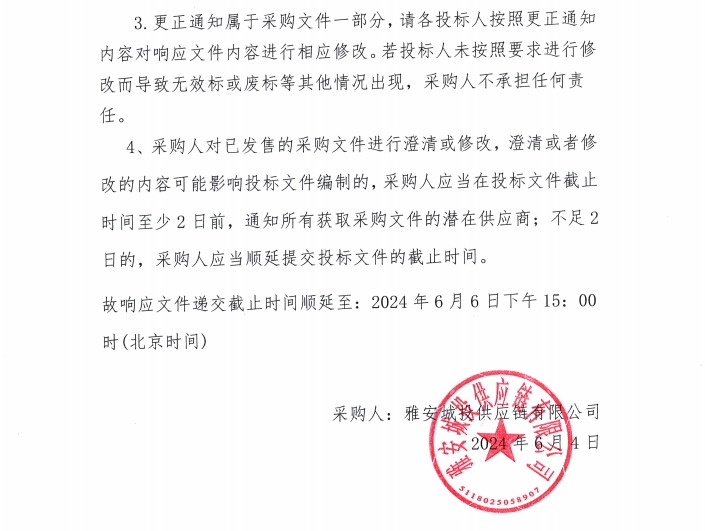 雅安城投供應鏈有限公司碎石采購更正通知(一)