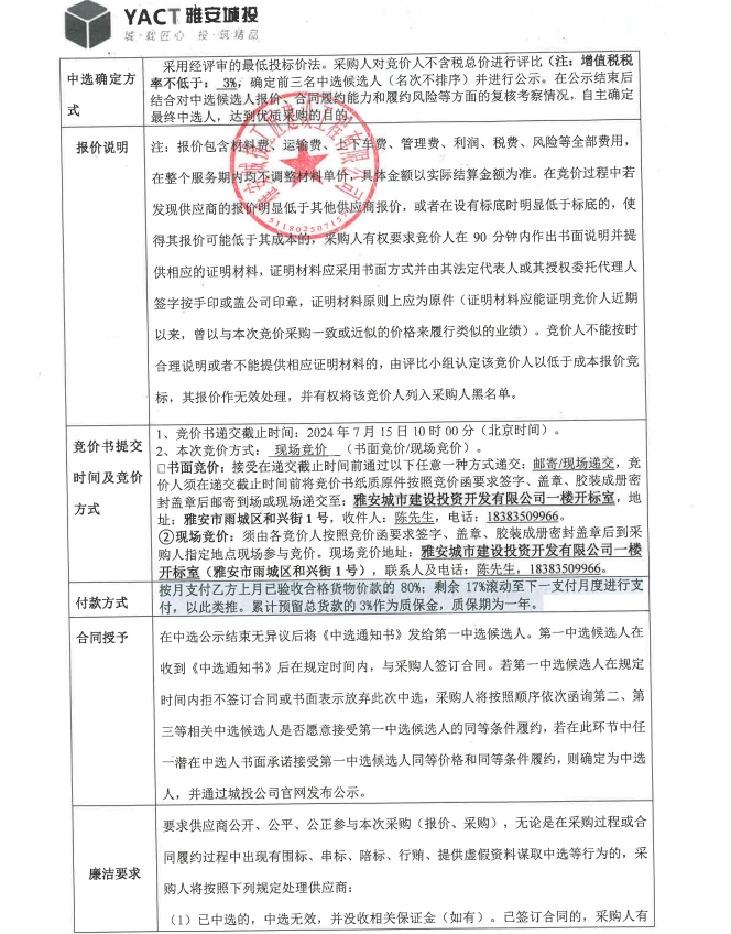雅安市大興生態(tài)旅游建設項目洗凈細白沙材料采購(三次)競價公告