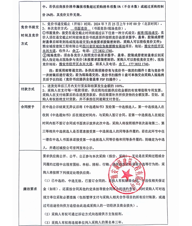 四川省區(qū)域應(yīng)急救援雅安基地項目主體、臨邊修復(fù)整改材料采購競價公告