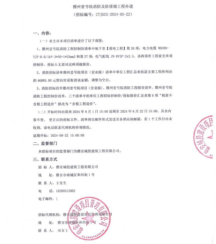 雅州壹號(hào)院消防及防排煙工程補(bǔ)遺