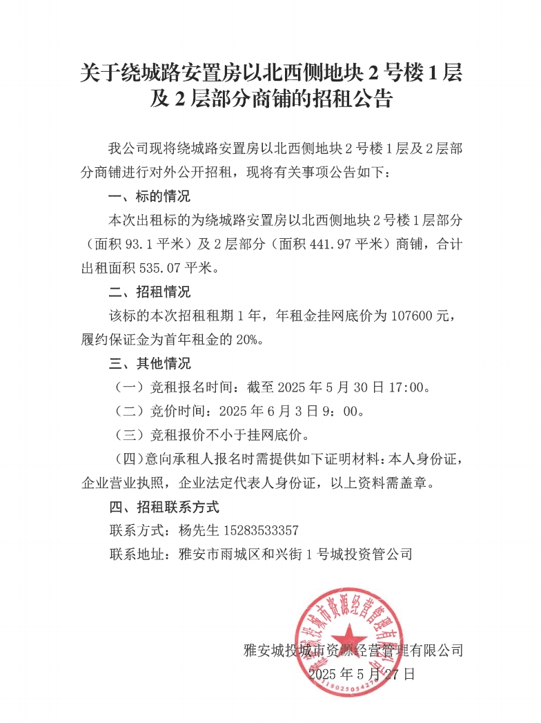 關(guān)于繞城路安置房以北西側(cè)地塊2號樓1層及2層部分商鋪的招租公告