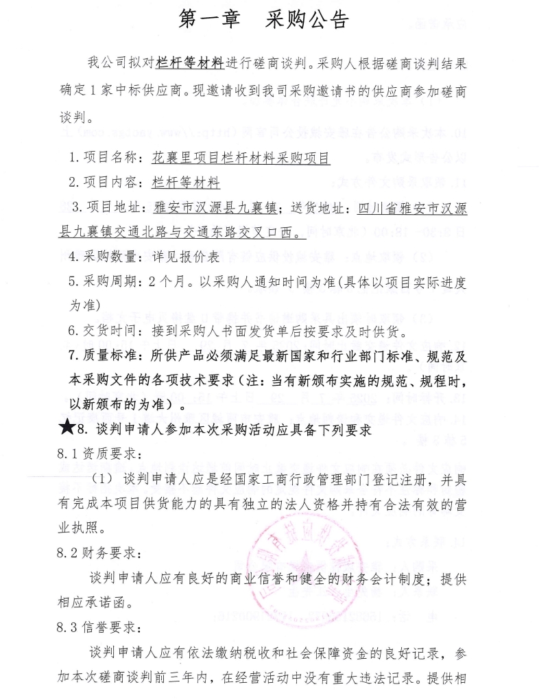 欄桿等材料采購公告