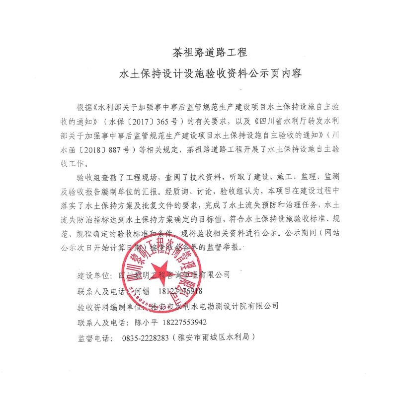 茶祖路道路工程水土保持設(shè)計(jì)設(shè)施驗(yàn)收資料公示頁內(nèi)容